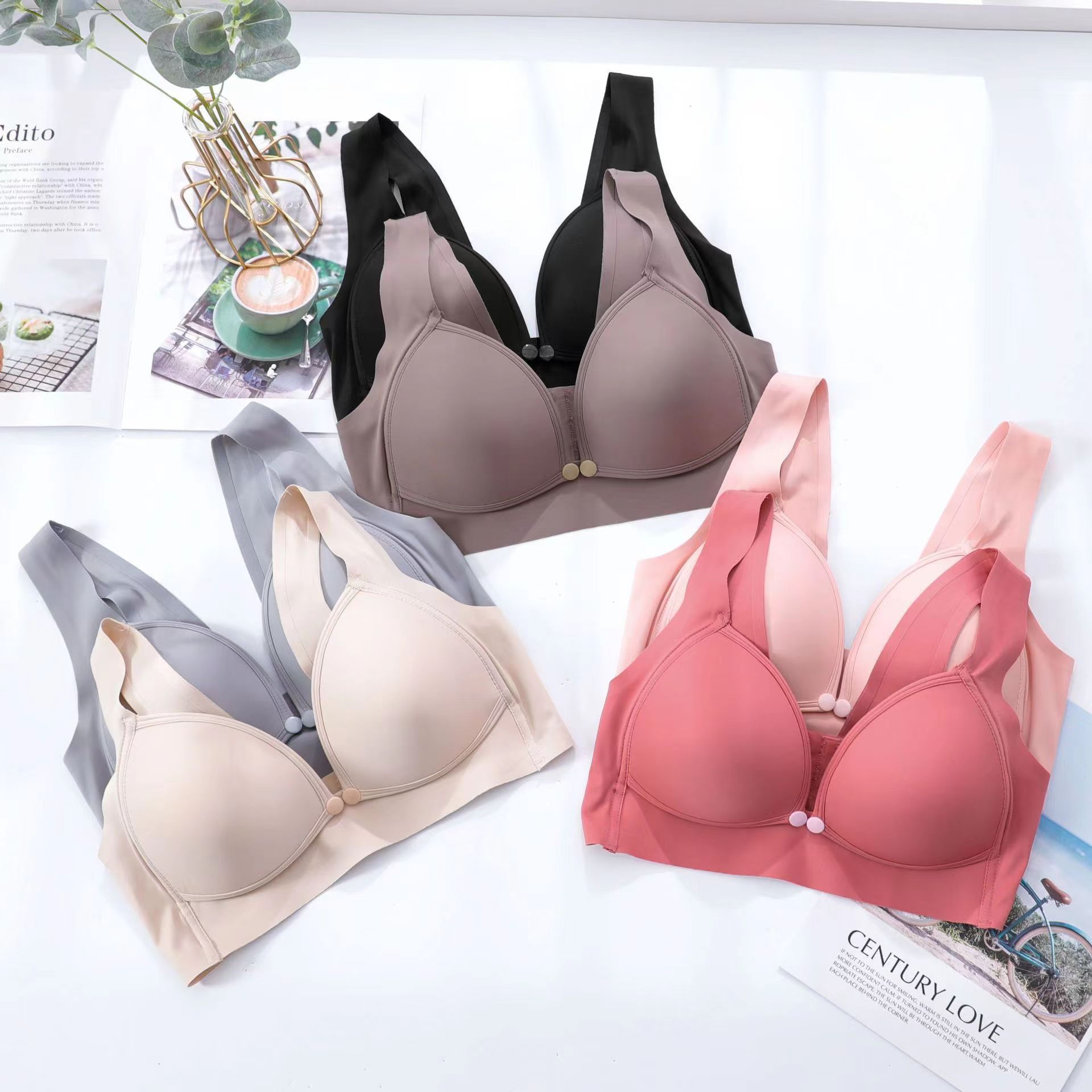 クロスボーダー固定カップフロントホックブラジャー 女性用 薄型 大きいサイズ ノンワイヤー プッシュアップ固定カップ ベスト型ブラジャー