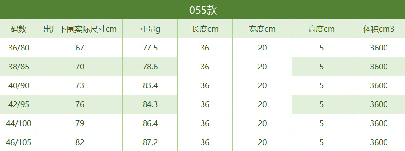 サイズ 36/80【推奨40-47.5kg】,38/85【推奨47.5-57.5kg】,40/90【推奨57.5-65kg】,42/95【推奨65-72.5kg】,44/100【推奨72.5-80kg】,46/105【推奨80-87.5kg】