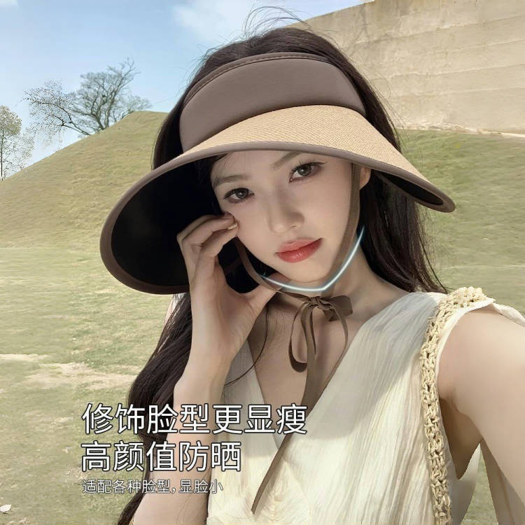 遮阳帽UPF50+大帽檐夏季骑车防紫外线空顶防晒帽女uv太阳帽子遮脸