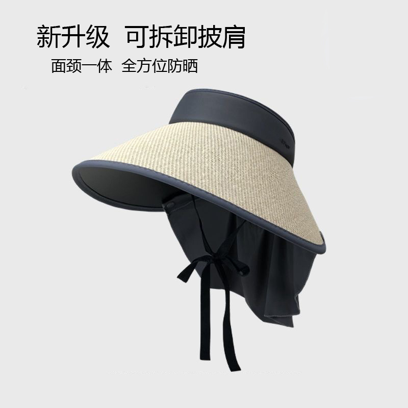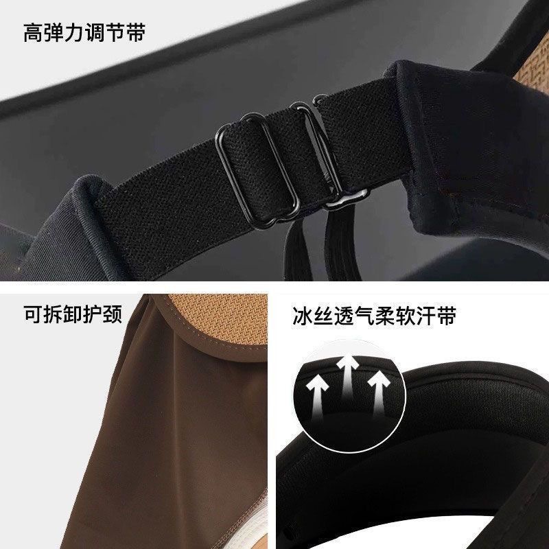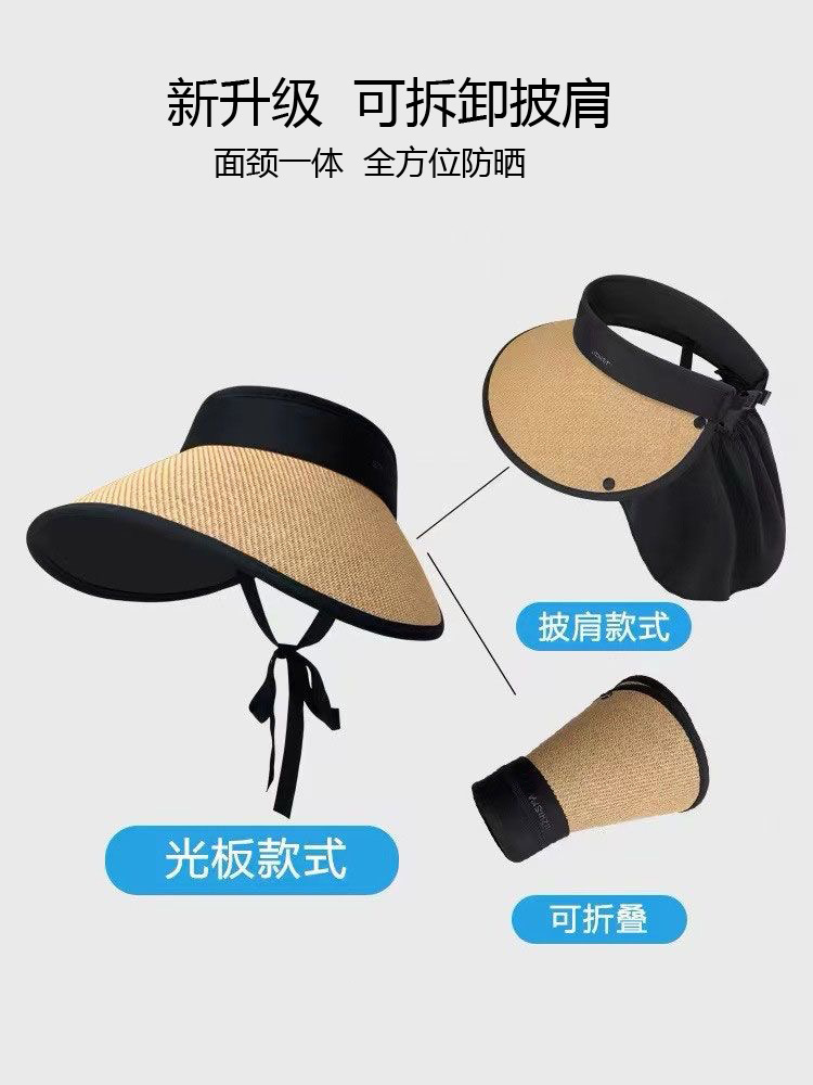 披肩遮阳帽加大帽檐防晒帽女夏季防晒紫外线草编空顶太阳帽可折叠