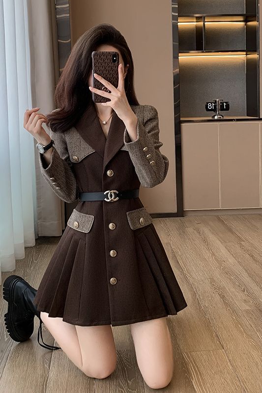 西服领气质高级感连衣裙女2025秋季新款收腰显瘦时尚开叉裙潮代发