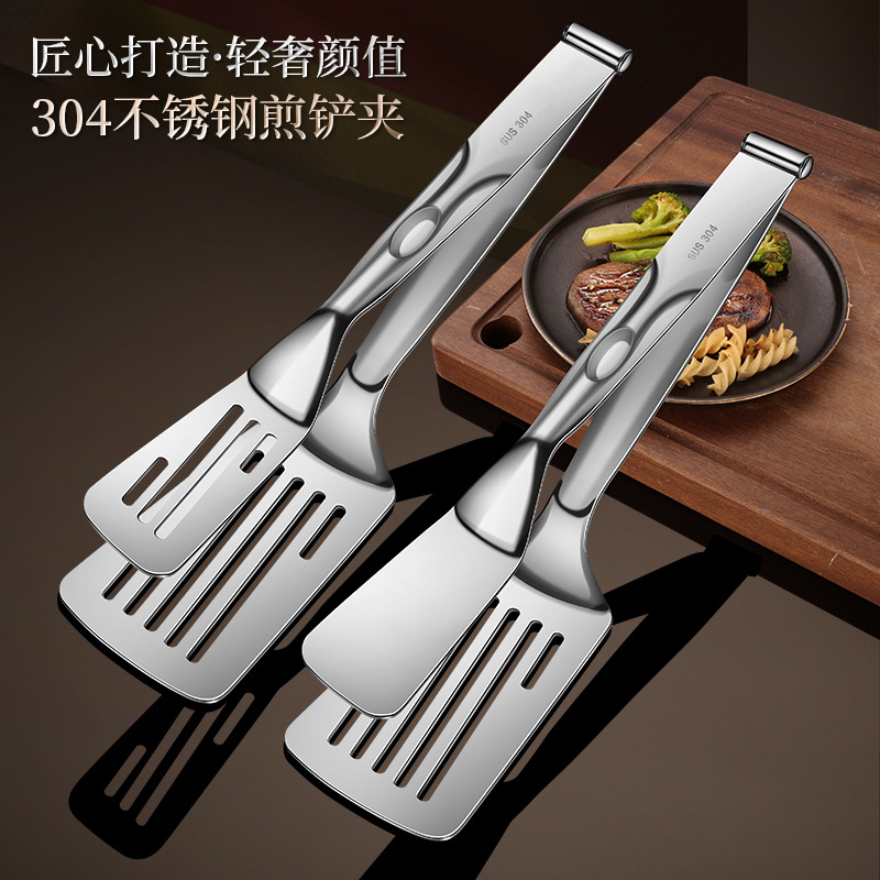 304不锈钢新款三线牛排夹滤油夹煎鱼夹 防烫夹煎鸡蛋夹烤肉滤油夹