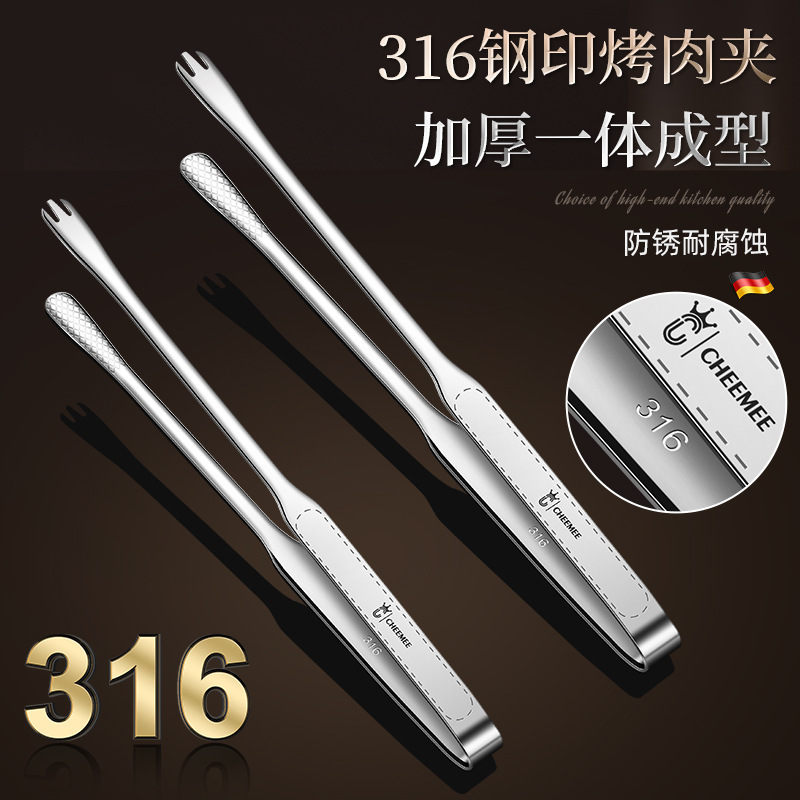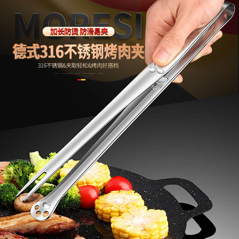 新品316ステンレス韓国式ステーキクリップバーベキュークリップ厚手延長専用食品クリップ家庭用焼肉クリップ