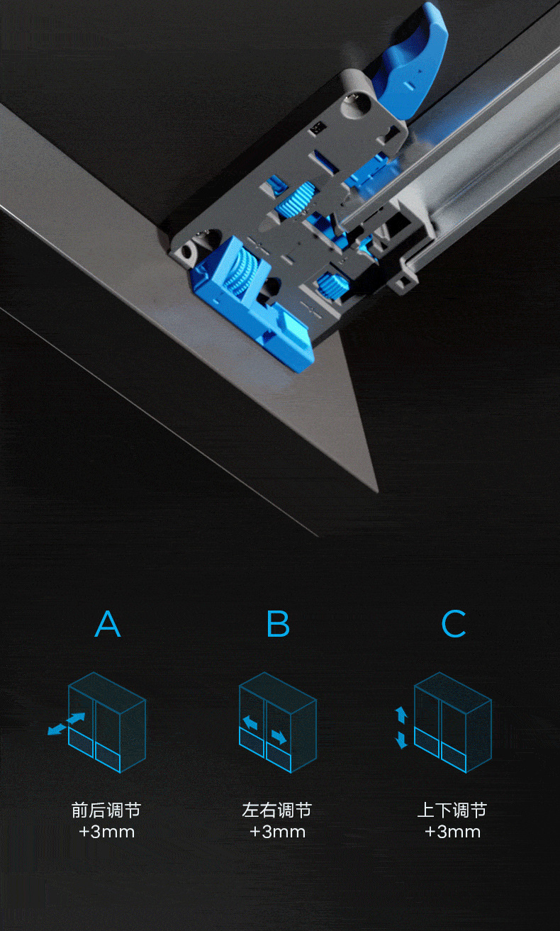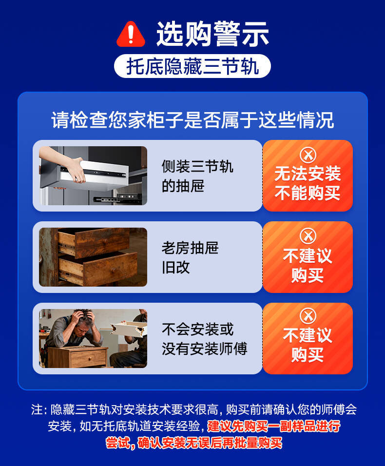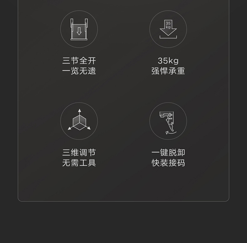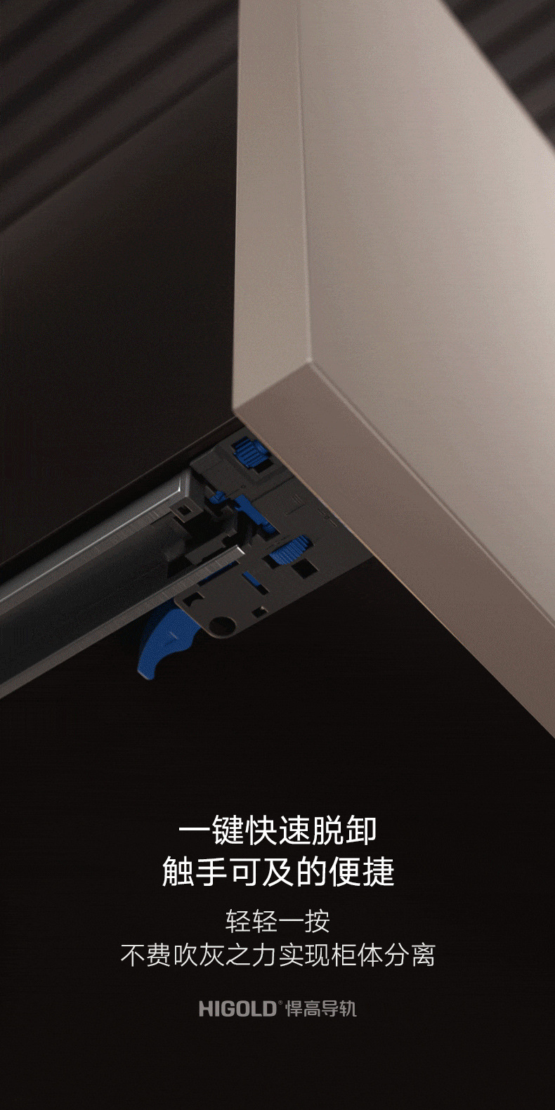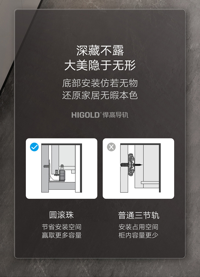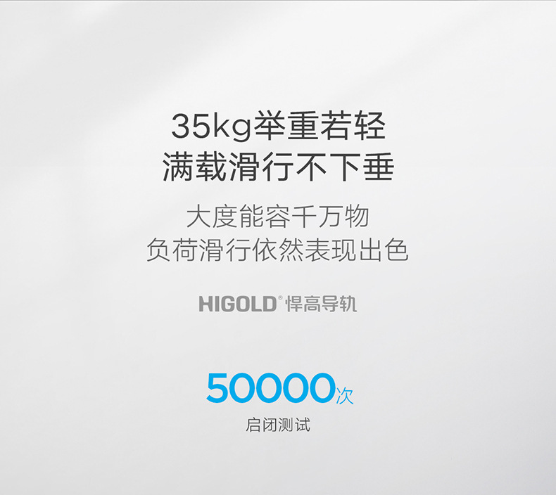 HIGOLD/悍高M系列隐藏全拉三节托底轨抽屉缓冲静音滑轨托底抽