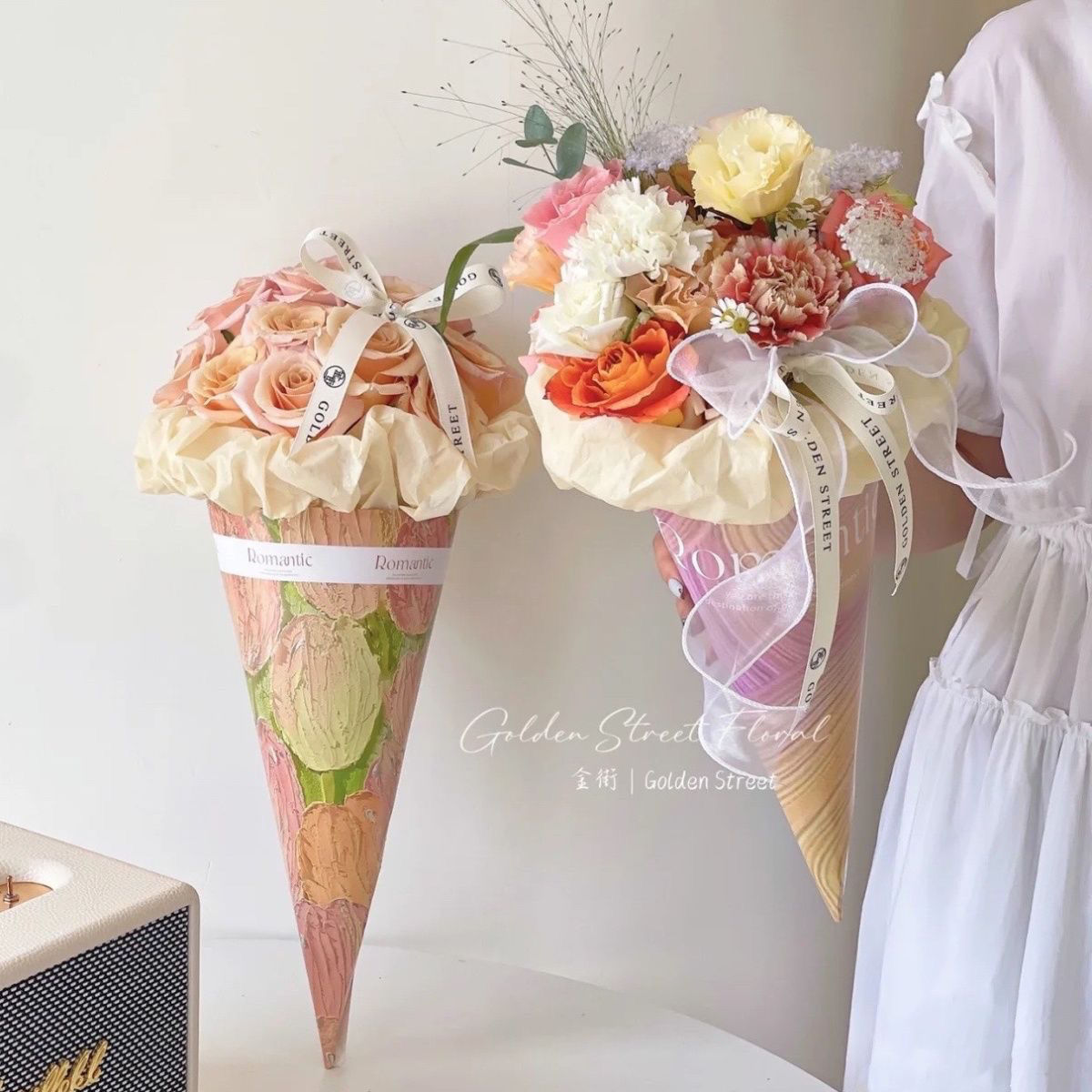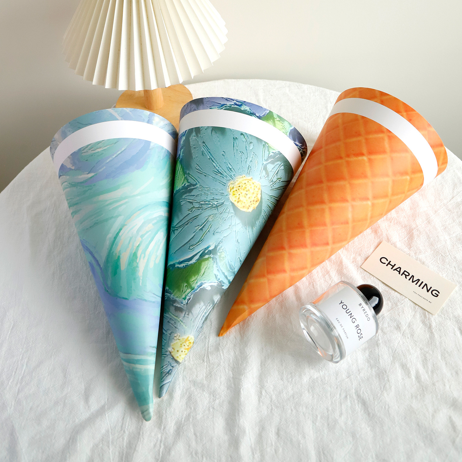 ネットレッド新製品アイスクリーム甜筒紙花束紙生花包装紙花屋用アイスクリーム花筒diy材料