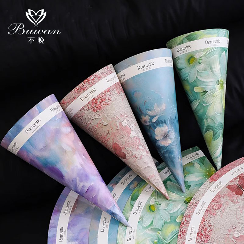 唐徳油絵風創意アイスクリーム甜筒花束包装紙厚手紙クラフト紙花芸DIY資材