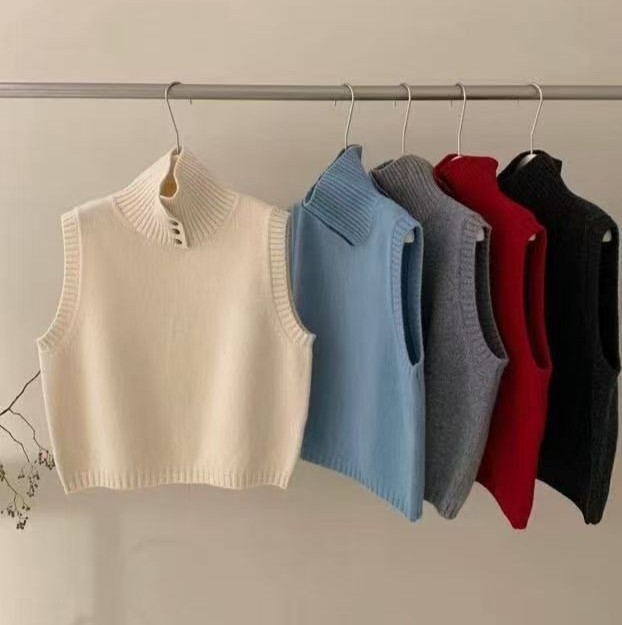 法式叠穿打底高领内搭无袖毛衣女秋冬季慵懒风高级感针织马甲背心