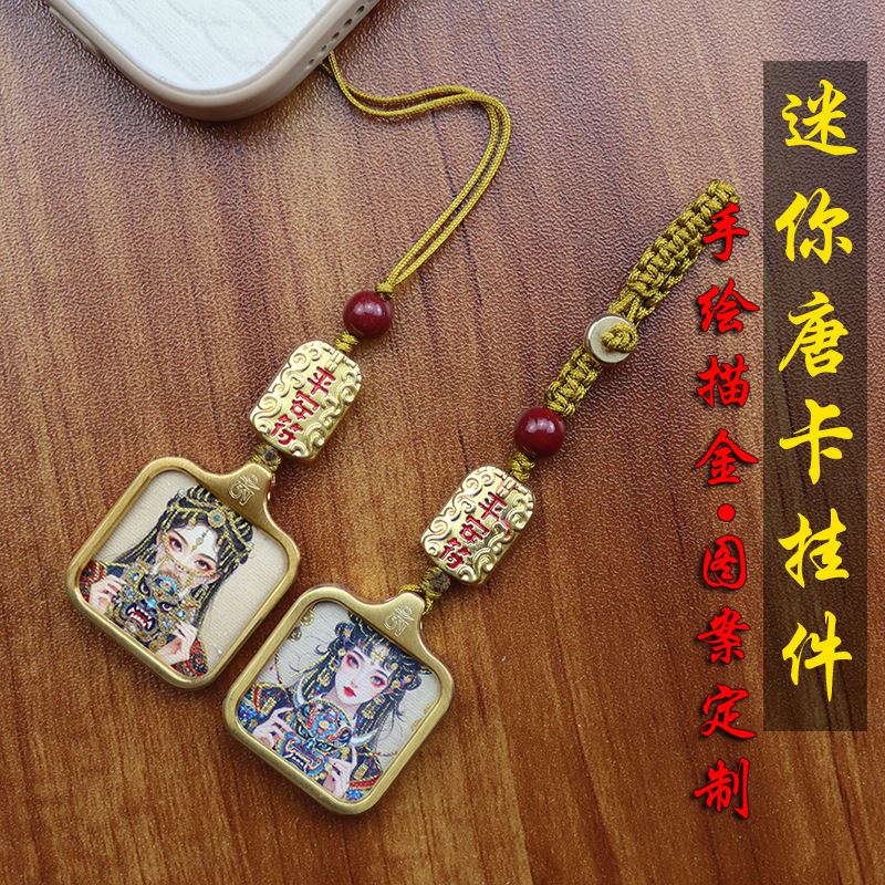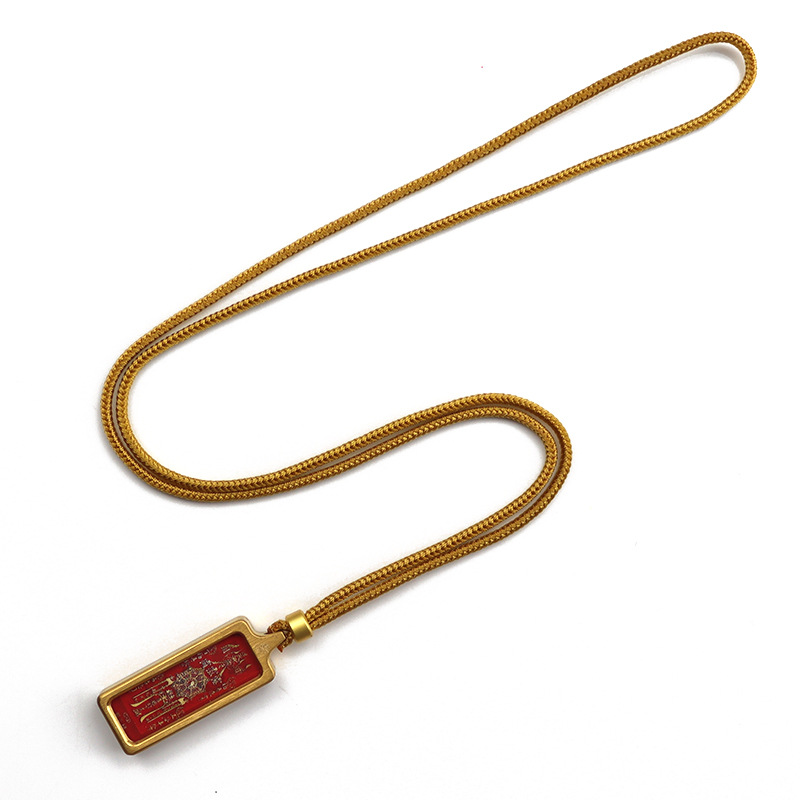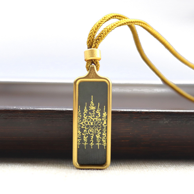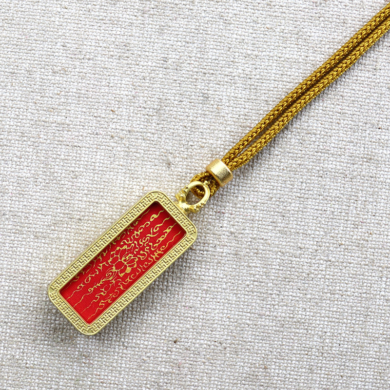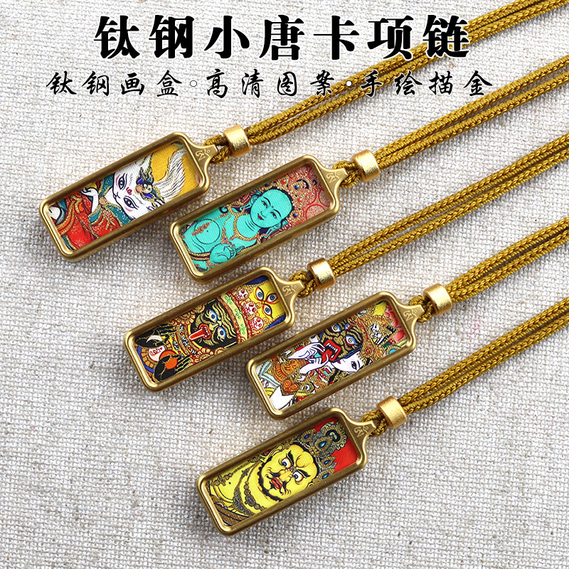 チベットタンカペンダント手描きゴールド五条経文道家妖精八卦四方神獣チタン鋼タンカネックレス