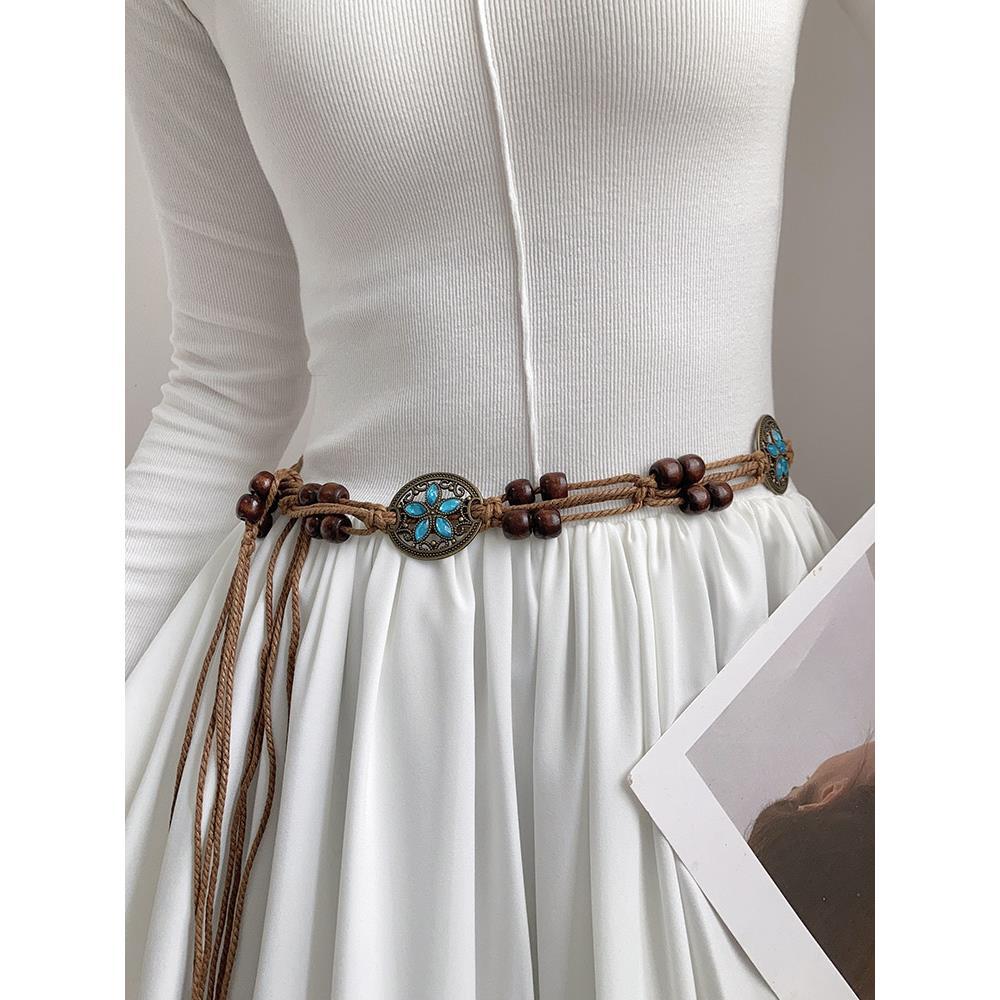 民族風レトロ編み込みベルト、女性用ハンドメイドシミア多用途ウエストチェーン、シンプルワンピース、レトロスタイル