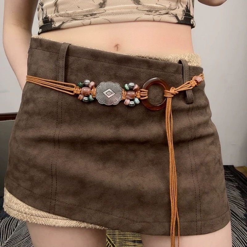 ボヘミアン復古風流蘇腰鎖女性の精緻な手編みウエストロープとスカート春夏民族風ベルト