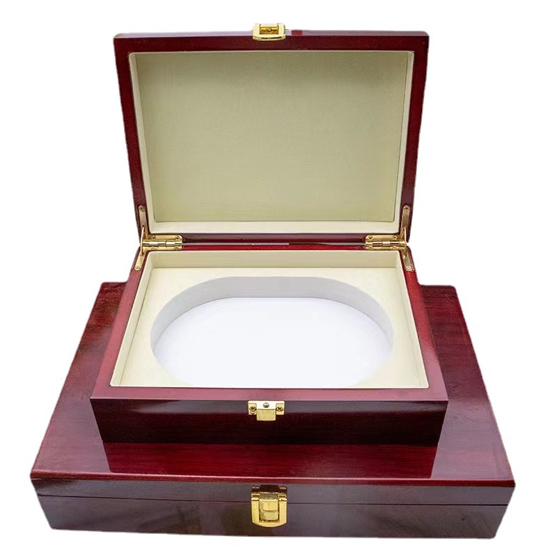 現物の経典の赤い木目の明るい面の漆のギフトボックスのハイエンドの木の箱はlogoの内張りを決めることができます。