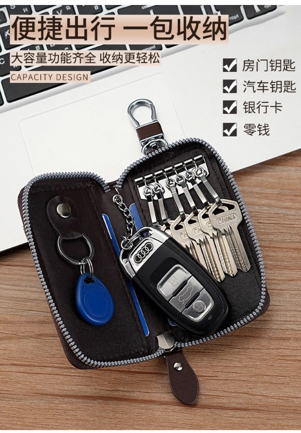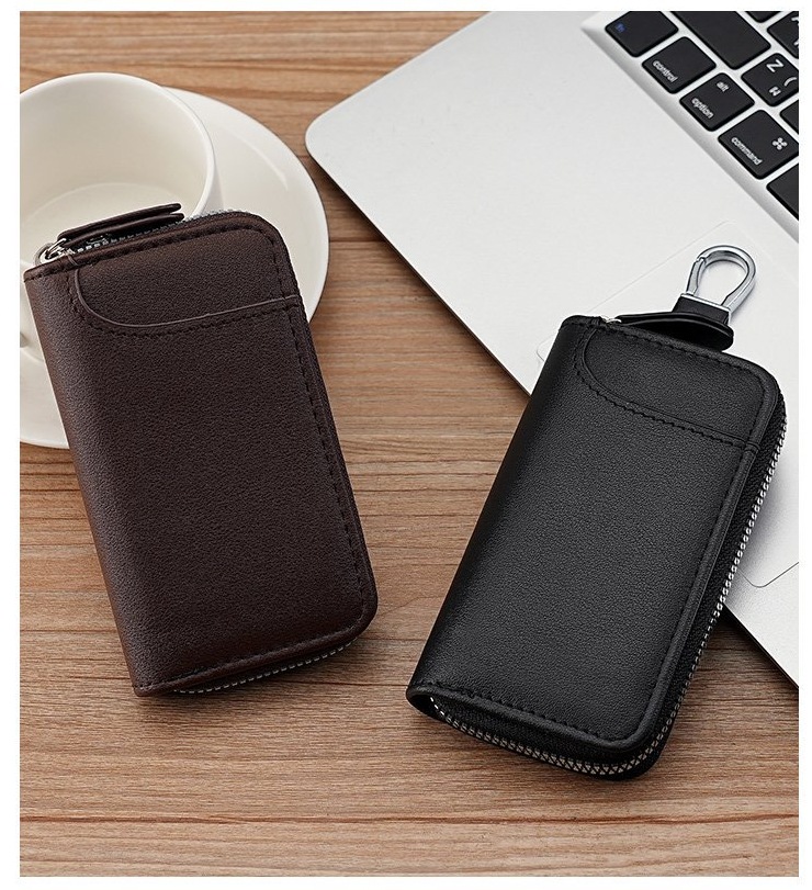 キーバッグ男性大容量真皮質感ビジネス家庭用シンプルなジッパー腰掛け自動車多機能カードバッグ卸売り