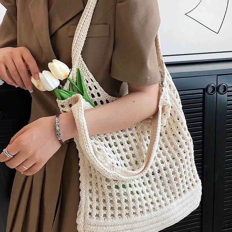 ビーチ休暇レジャー大容量バッグ女性シンプルなニットバッグ2025夏に起爆した小さなショルダーバッグ