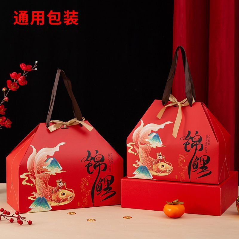 新年锦鲤礼品盒子 制作异形彩色胶印支持设计加印LOGO年货包装盒