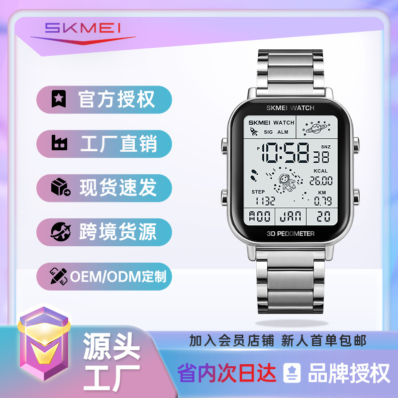 SKMEI亜美防水電子時計屋外学生腕時計角形クロスボーダー電子ソーススポーツ男性時計