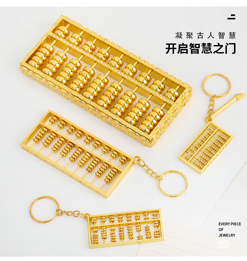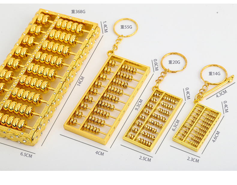 そろばん合金アクセサリー 4.6cm,小さなそろばんとペンを吊るすためのキーホルダー,9.3cm大金そろばんキーホルダー,9cm大ダイヤモンド象嵌金そろばん飾り