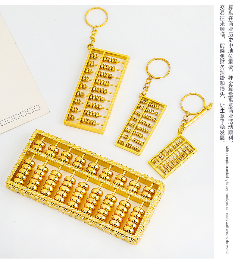 合金電気メッキ金算盤キーホルダー飾り観光土産新築祝い装飾金属工芸品ギフト