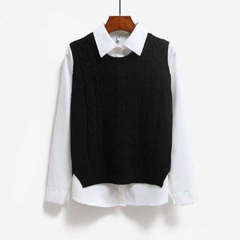 包郵便2023年の新型韓国版は丸首ニットのベストを着ています。