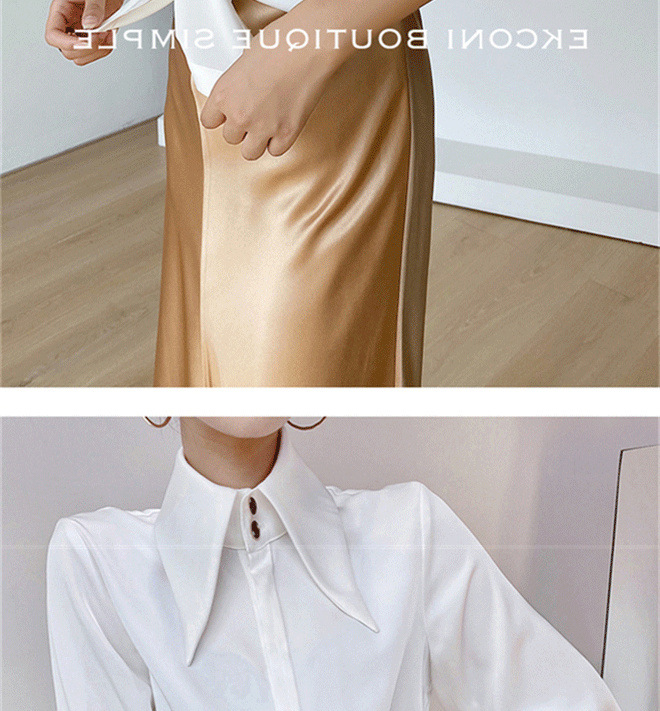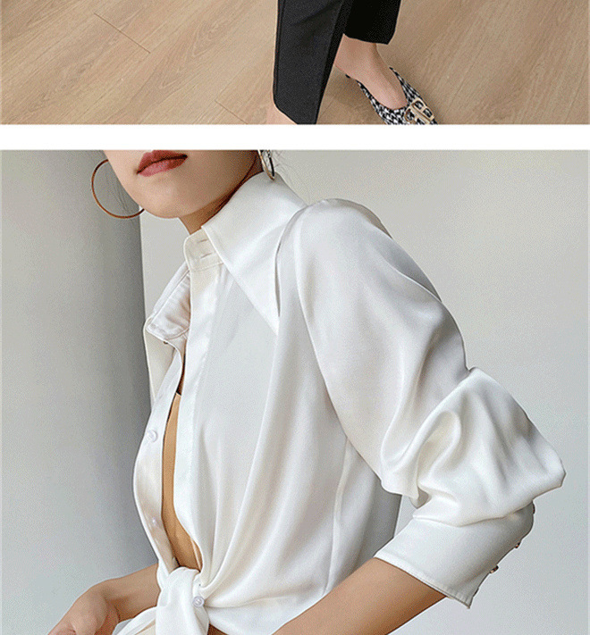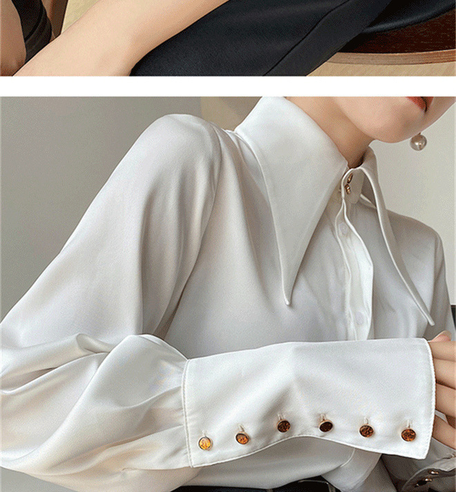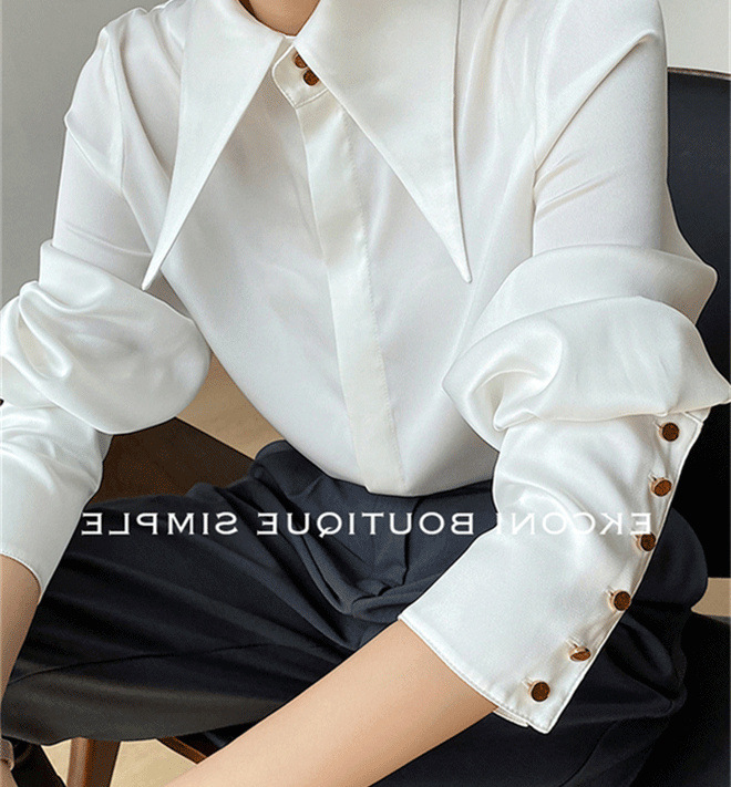 尖领缎面衬衫女春秋宽松垂感丝滑上衣设计感小众气质翻领衬衣