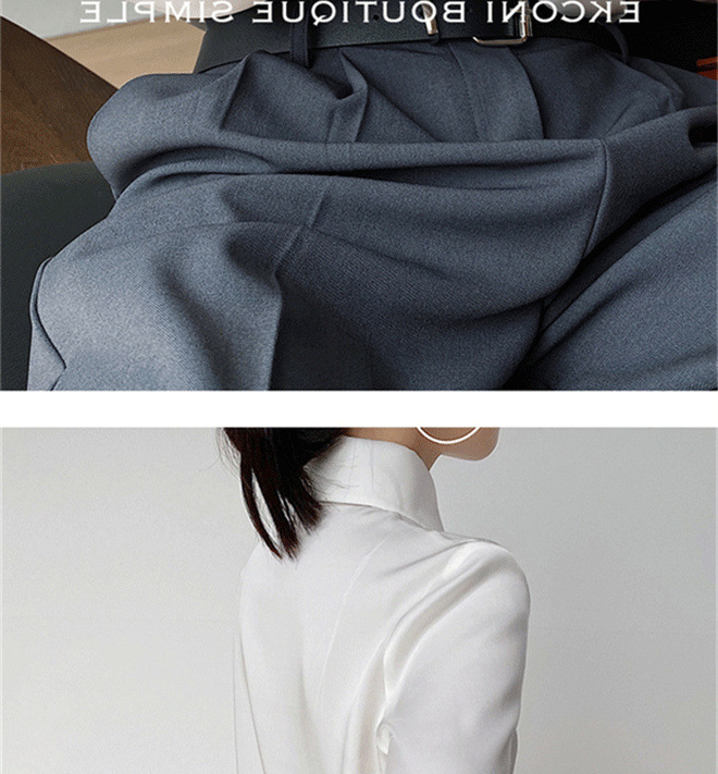 ヘイズブルーの尖襟シャツ レディース 2025 春秋 デザイン性のあるニッチな通勤用オフィスシャツ 酢酸サテン生地トップス