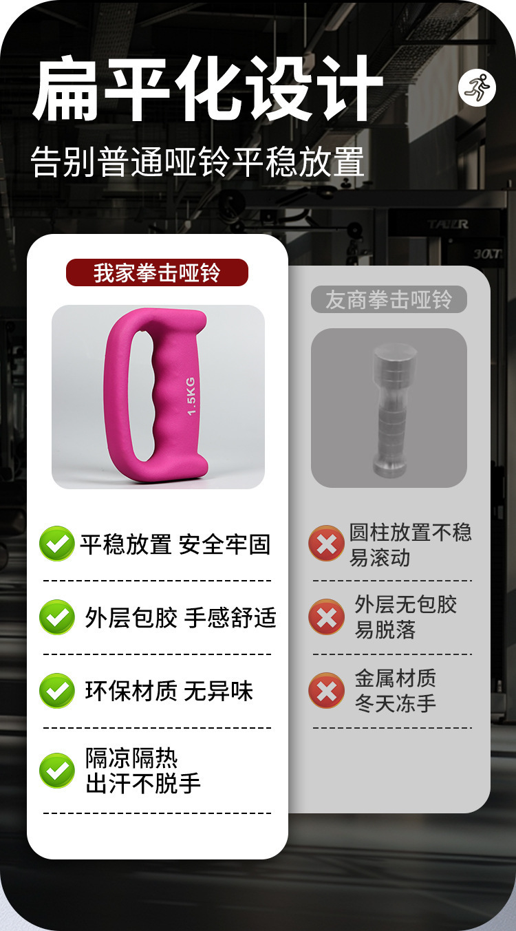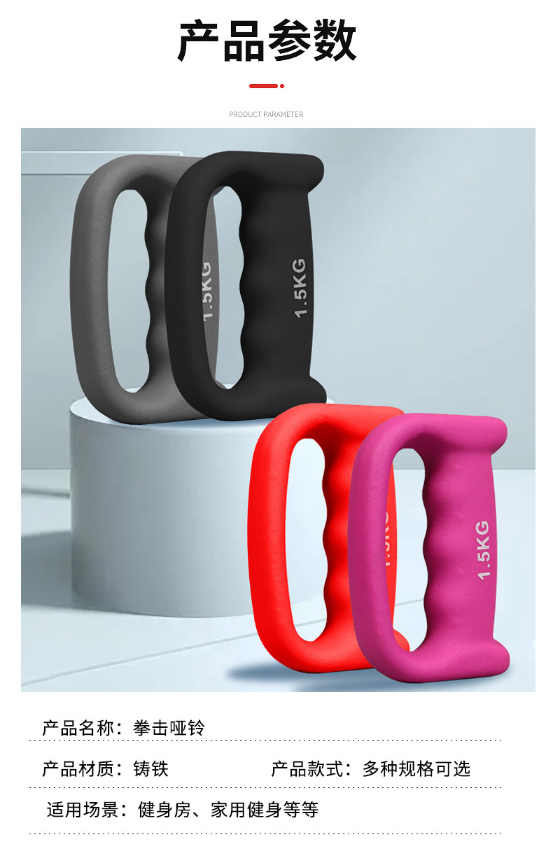 拳击哑铃健身空击哑铃搏击瘦手臂跳操拳峰落点跑步浸塑铸铁