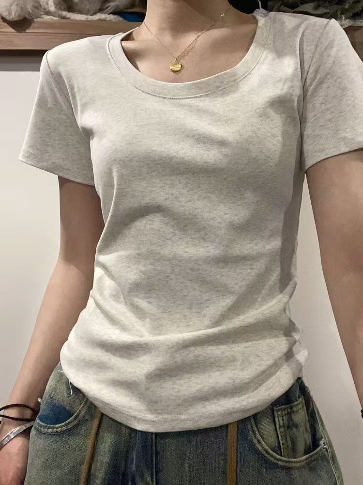 U领修身短袖女2025夏季新款韩系T恤白色正肩打底衫外贸女装上衣