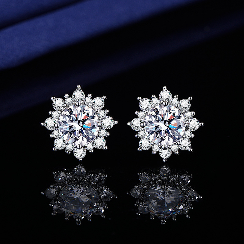 生中継シミュレーション莫桑石ピアス女ins愛S925純銀針ジルコン六爪莫桑石イヤリング耳飾り