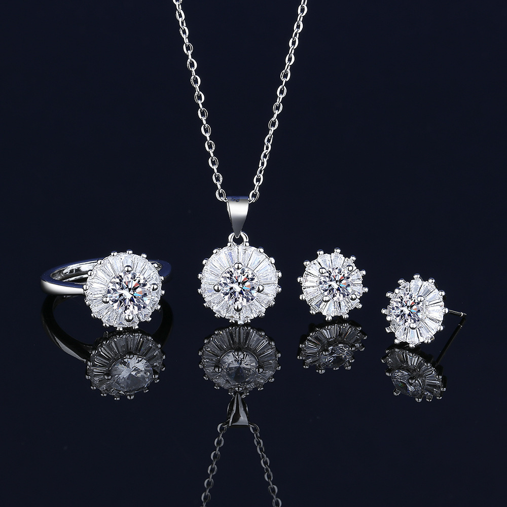 振音生放送で人気の2カラットの太陽の花のセットが豪華にダイヤモンドの指輪のネックレスのイヤリングの女性のファッションのアクセサリをはめ込んでいます。