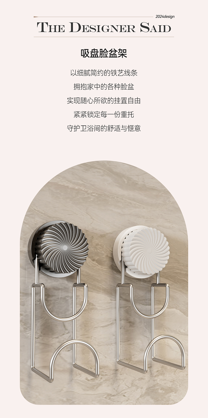 旋转吸盘脸盆挂钩免打孔脸盆收纳架墙上壁挂盆神器卫生间强力承重