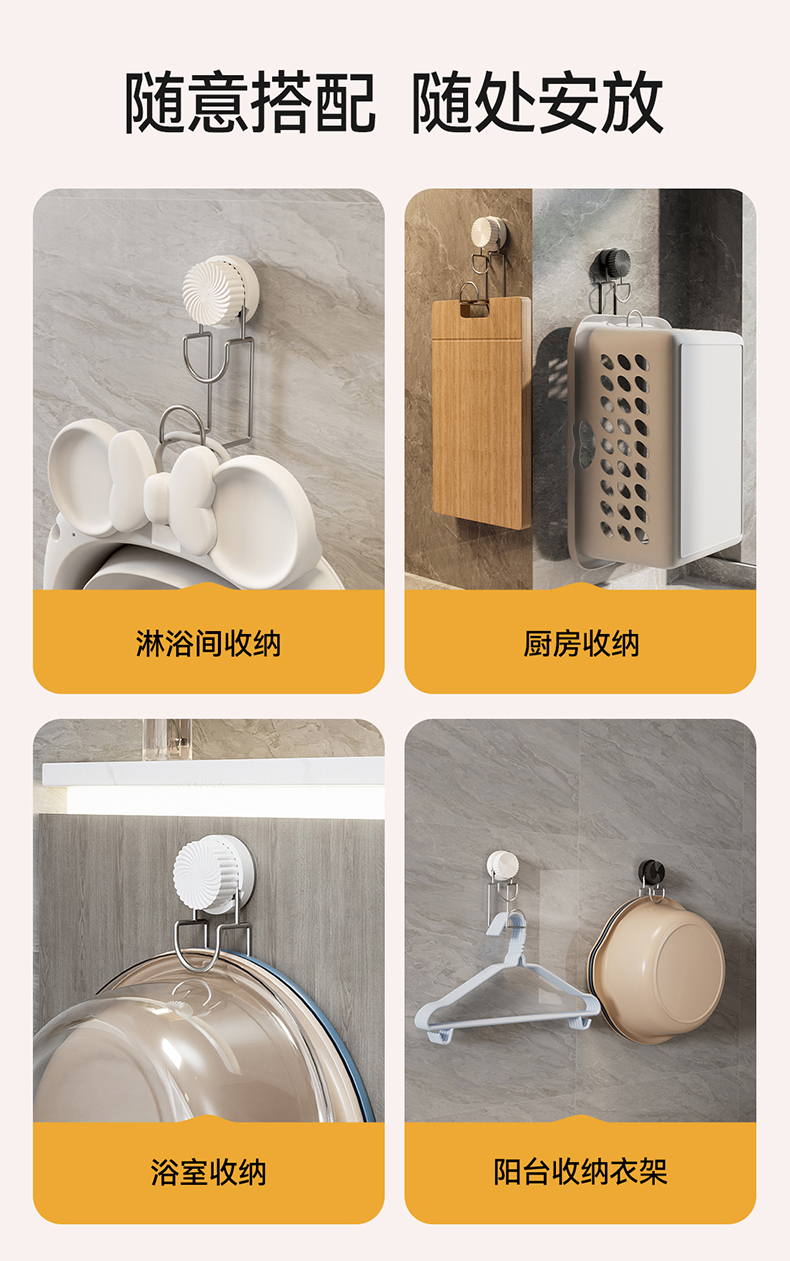 吸盤回転洗面器フック穴なし洗面器収納棚家庭用キッチントイレ壁壁掛け置物フック