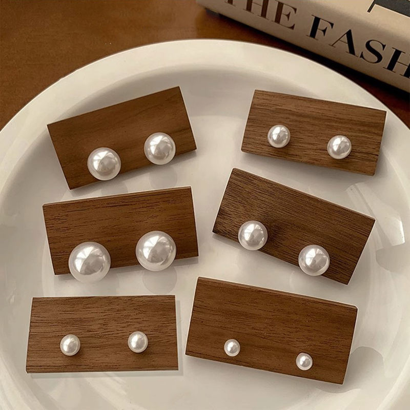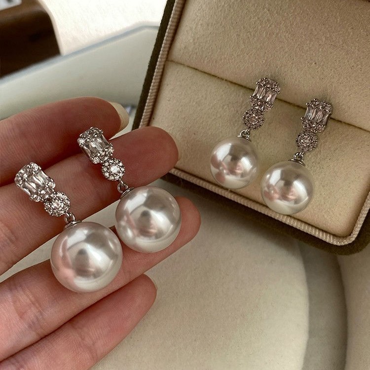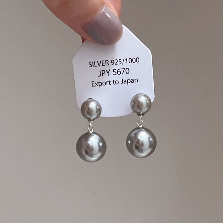 フランスパールピアス女性ins小衆デザイン高級感金属ボールグレー白真珠イヤリングファッション耳飾り