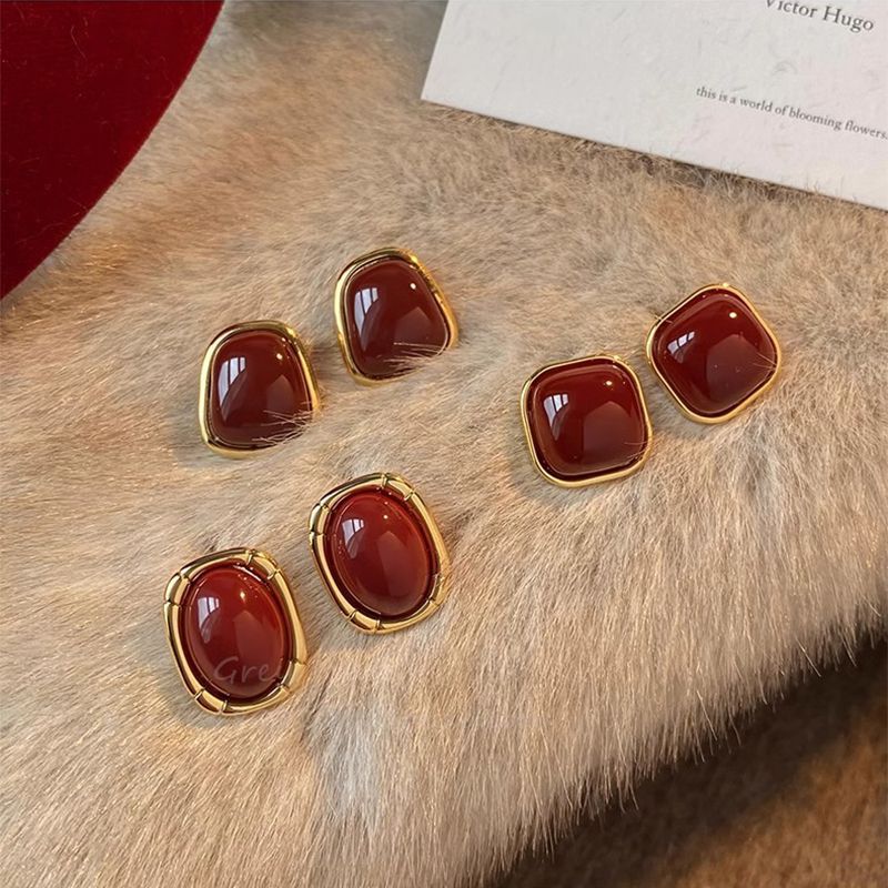 レトロな香港風のワインの赤い釉薬のイヤリングの女性のvingateの豪華な高級感のイヤリングの森系の百合の耳の装飾品