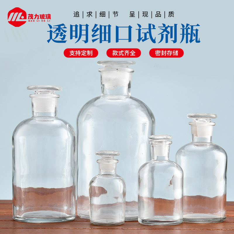 供应试剂瓶透明细口茶色试剂瓶分装瓶实验室用试剂瓶