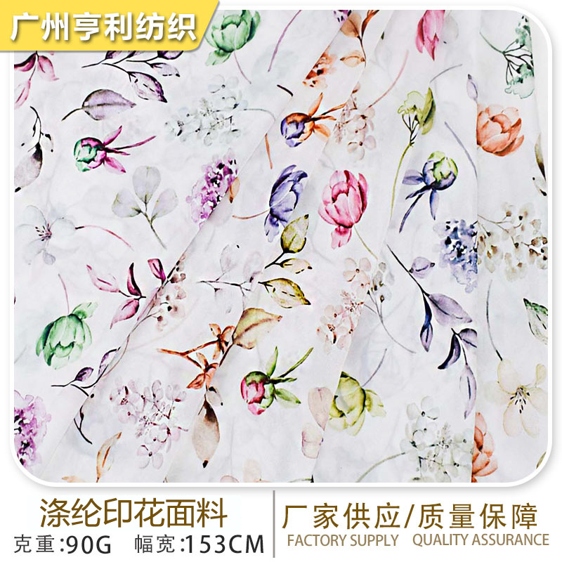 水彩ブルーミング花柄ポリエステルプリント生地春夏ドレスシャツ生地サポート 2m MOQ サンプル