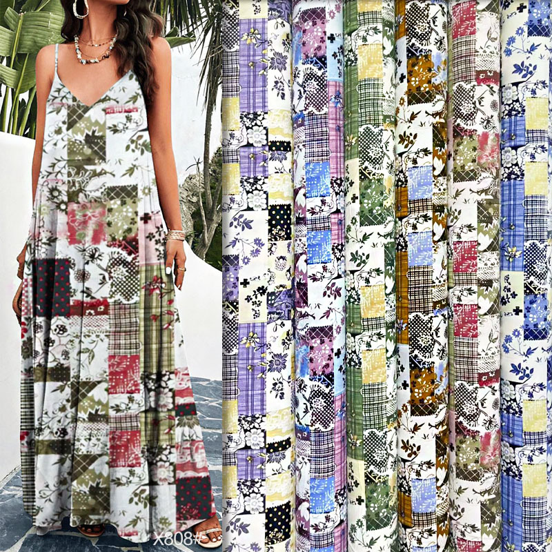 夏パッチワークポリエステルプリント生地ヴィンテージ古い花柄チェック柄パッチワークドレスホームファブリック卸売