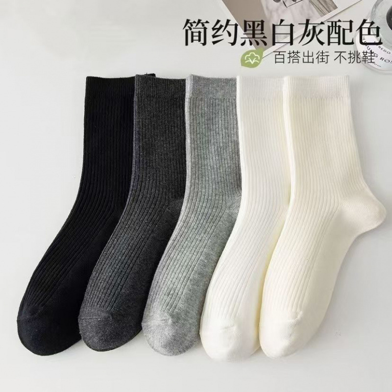 カップル男女同型白黒灰四季百合中筒綿靴下純色高筒スポーツ靴下防臭学生男女