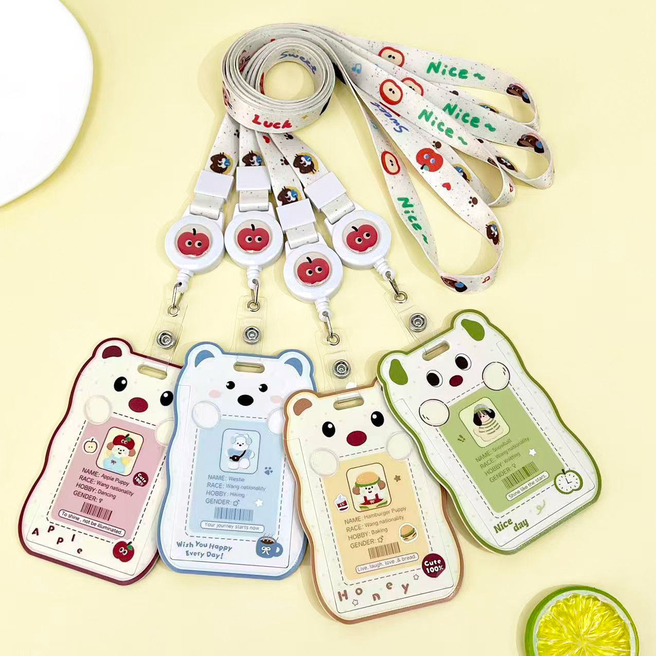 创意卡通卡套学生校园卡饭卡保护套ABS熊耳朵波浪卡包挂脖跨境