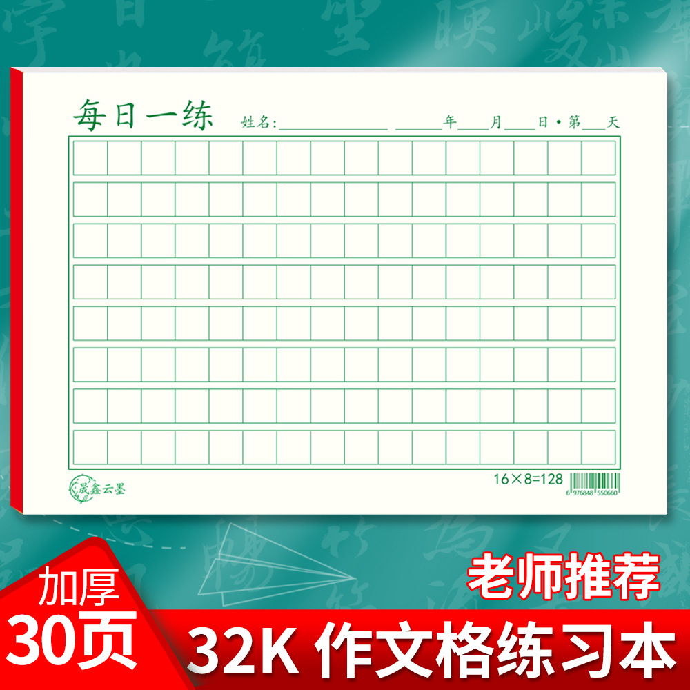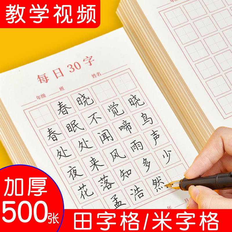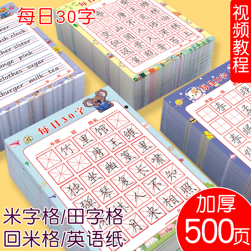 毎日30字硬筆書道用紙小学生習字本田字格米字格作業練習作品紙