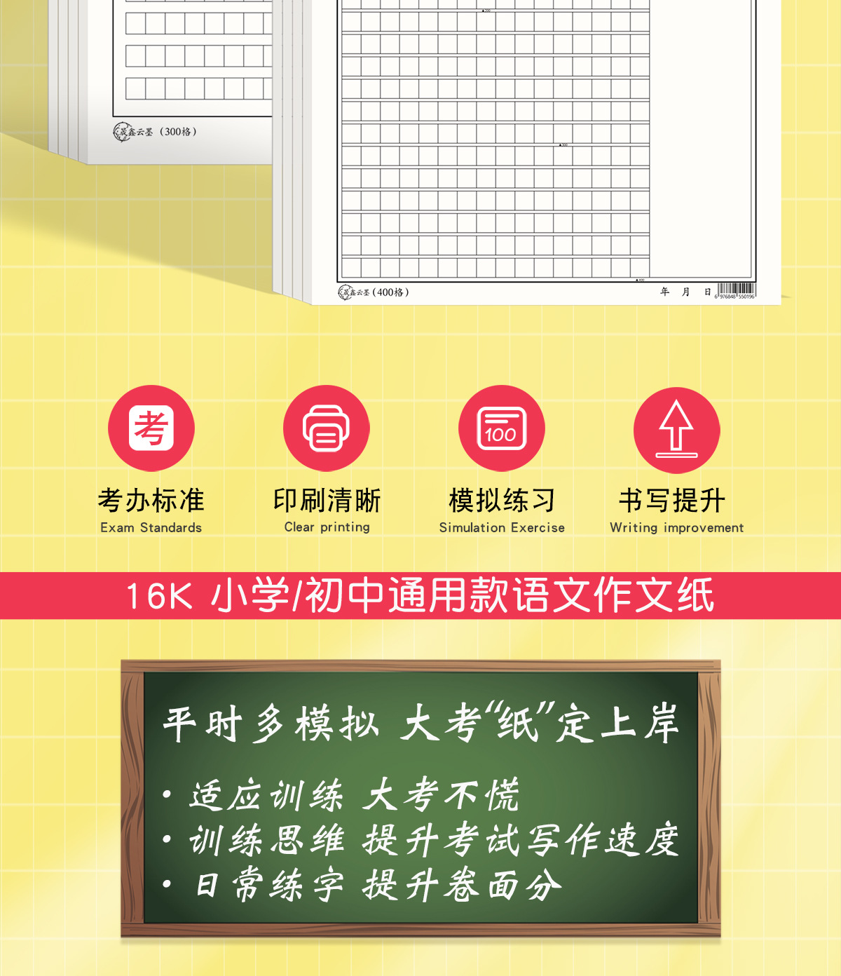 主力原稿纸语文作文纸300格400格500格学生方格稿纸可写班级姓名