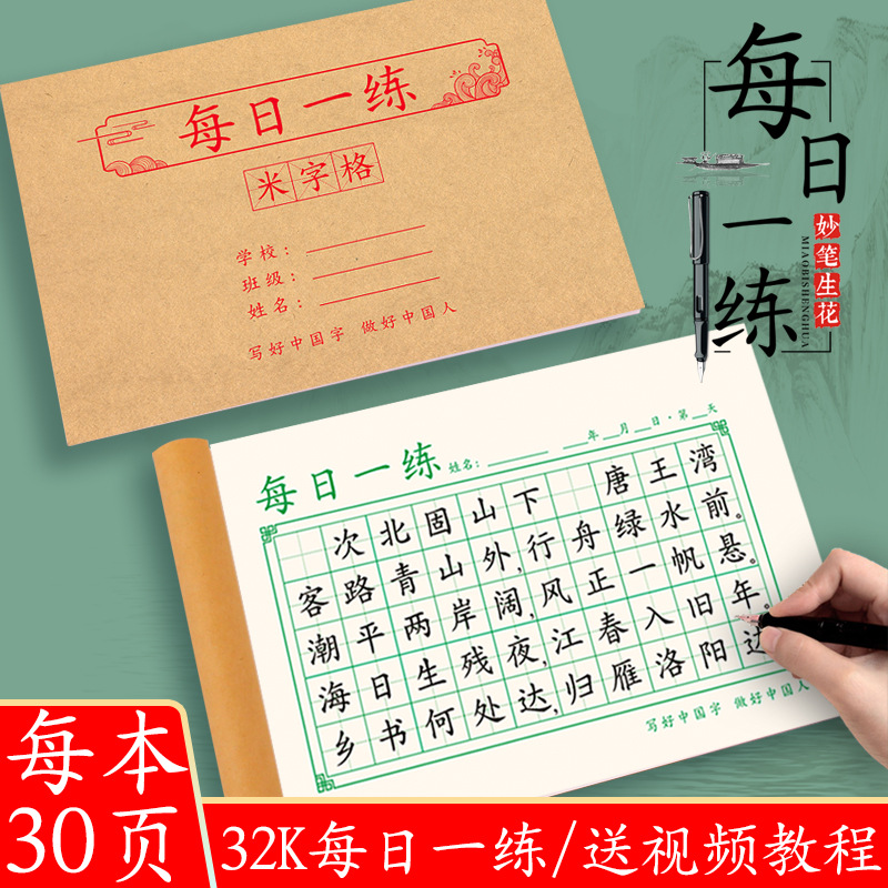 32k小学生の硬筆の書道の練習紙は毎日カードを打って字の本の米の字の格の田の字の格のノートを練習します。