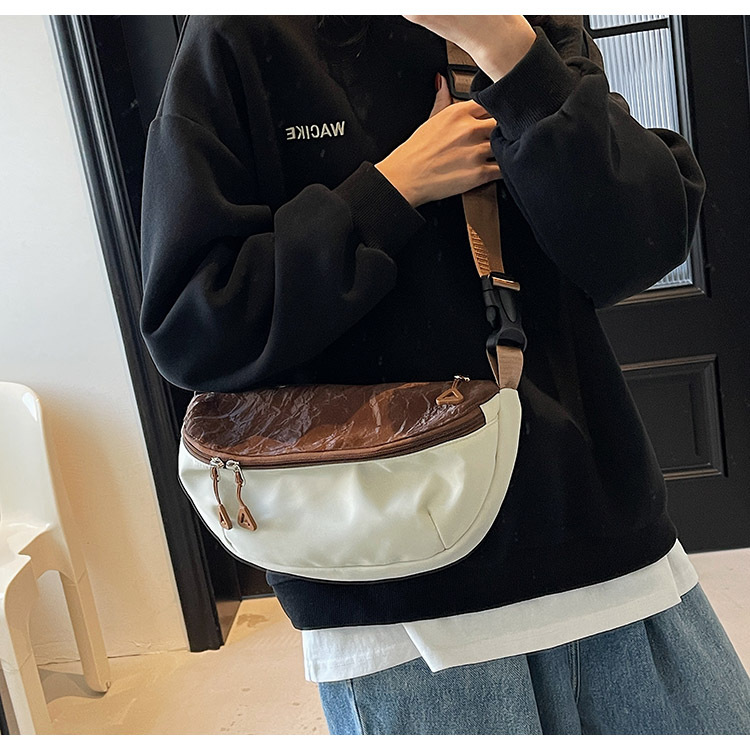 2025新型の韓国版の潮流は色をつなぎ合わせて斜めに女性のカバンを掛けます。