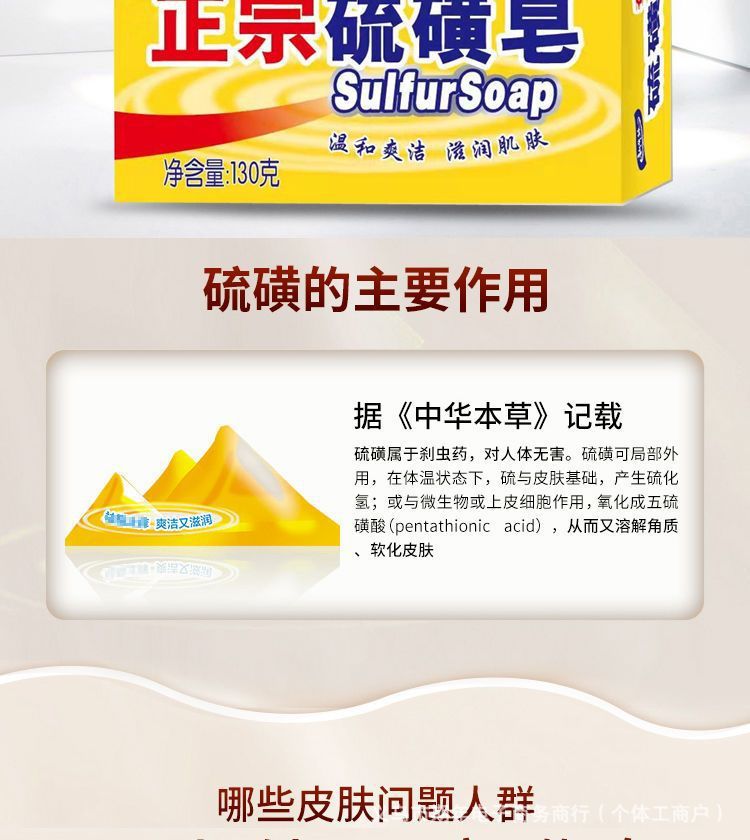 大きな塊の130グラムの硫黄石鹸は手を洗って顔を洗って入浴して皮膚を潤します。