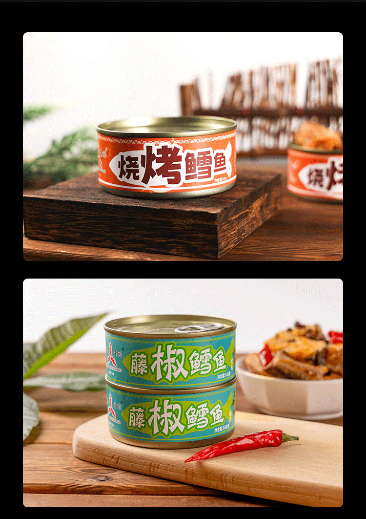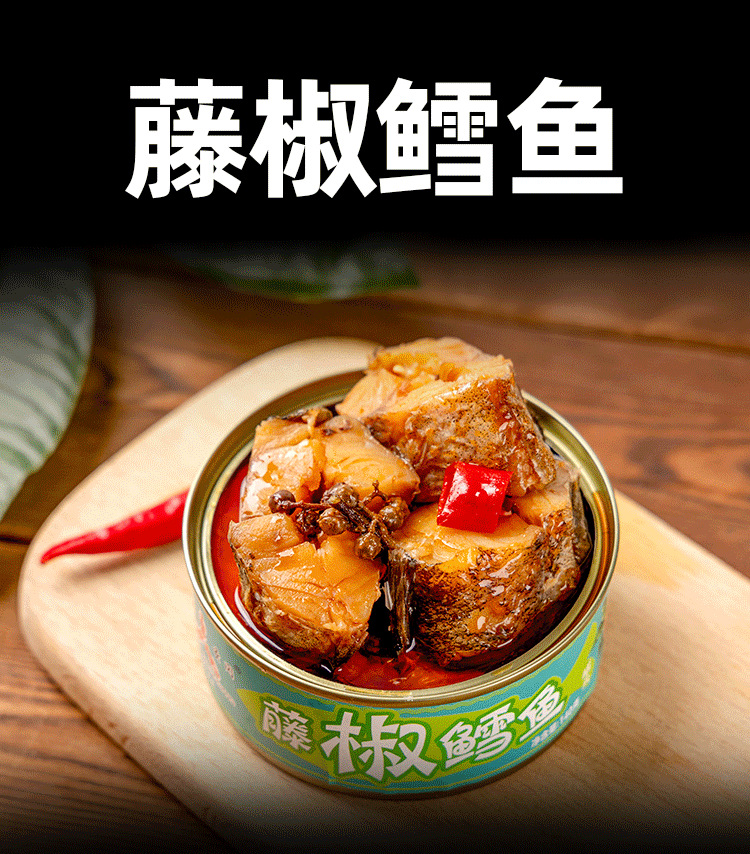 籐胡椒タラ缶詰、すぐに食べられるバーベキュー、スパイシーな缶詰魚、水産物、調理済み食品、すぐに食べられる既製料理、ドロップシッピング