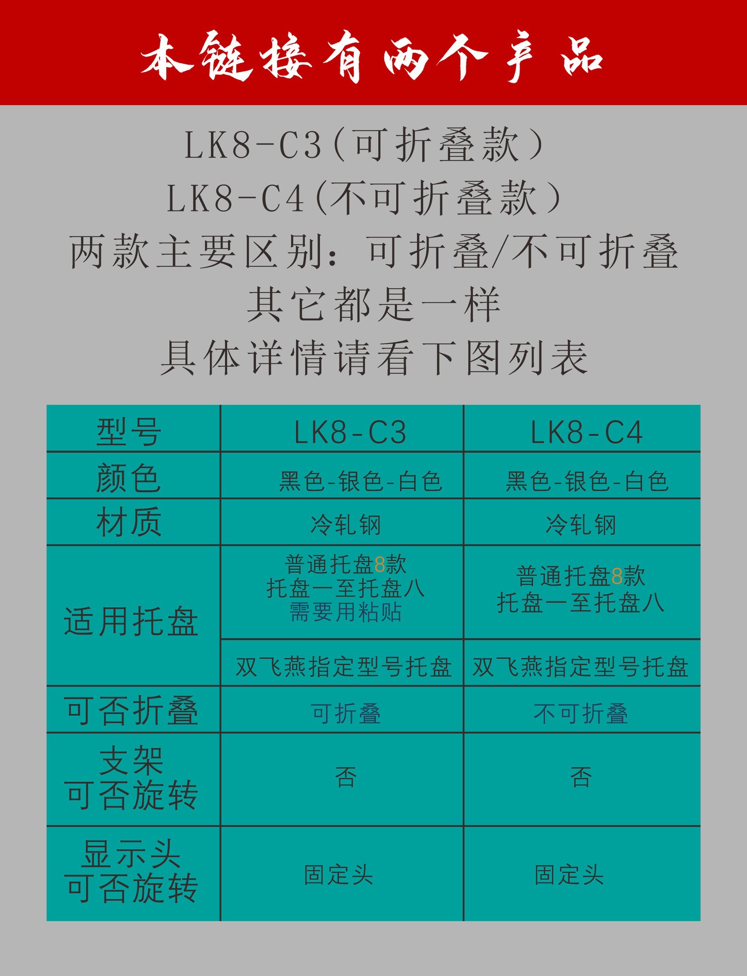 LK8-C3ブラケット+黒双飛燕専用トレイ(折りたたみ式),LK8-C3ブラケット+シルバー双飛燕専用トレイ(折りたたみ式),LK8-C3ブラケット+白双飛燕専用トレイ(折りたたみ式),LK8-C4ブラケット+黒双飛燕専用トレイ(折りたたみ不可),LK8-C4ブラケット+シルバー双飛燕専用トレイ(折りたたみ不可),LK8-C4ブラケット+白双飛燕専用トレイ(折りたたみ不可),LK8-C3 ブラケット + シルバー 通常のトレイ (1 ~ 8) は折りたたみ式です。カスタマー サービスにお問い合わせください。,LK8-C3 ブラケット + ホワイト 通常パレット (1-8) は折りたたみ式です。カスタマーサービスにお問い合わせください。,LK8-C4 ブラケット + シルバー 通常のトレイ (1-8) は折りたたみできません。カスタマーサービスにお問い合わせください。,LK8-C4 ブラケット + ホワイト 通常のトレイ (1-8) は折りたたみできません。カスタマー サービスにお問い合わせください。,LK8-C3 ブラケット + ブラックトレイ (折りたたみ式),LK8-C3 ブラケット + ブラックトレイ 2 (折りたたみ式),LK8-C3 ブラケット + ブラックトレイ 3 個 (折りたたみ式),LK8-C3 ブラケット + ブラックトレイ 4 個 (折りたたみ式),LK8-C3 ブラケット+ブラックトレイ5枚(折りたたみ式),LK8-C3 ブラケット + ブラックトレイ 6 個 (折りたたみ式),LK8-C3ブラケット+ブラックパレット7(折りたたみ式),LK8-C3 ブラケット + ブラックトレイ 8 (折りたたみ式),LK8-C4 ブラケット + ブラックトレイ 1 個 (折りたたみ不可),LK8-C4 ブラケット + ブラックトレイ 2 (折りたたみ不可),LK8-C4 ブラケット + ブラックトレイ 3 個 (折りたたみ不可),LK8-C4 ブラケット + ブラックトレイ 4 個 (折りたたみ不可),LK8-C4 ブラケット + ブラックトレイ 5 個 (折りたたみ不可),LK8-C4 ブラケット + ブラックトレイ 6 個 (折りたたみ不可),LK8-C4 ブラケット + ブラックパレット 7 (折りたたみ不可),LK8-C4 ブラケット + ブラックパレット 8 (折りたたみ不可)