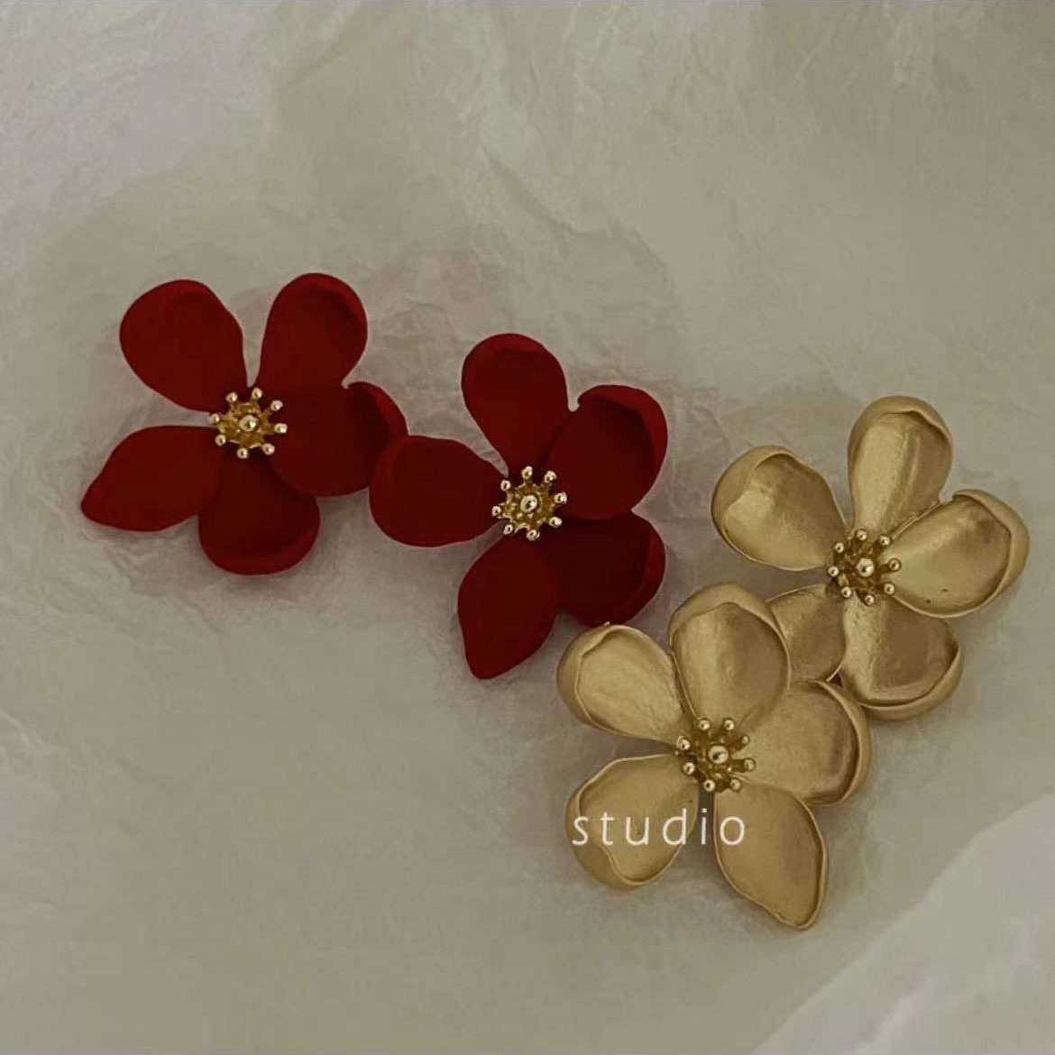 クロスボーダー欧米風イヤリング ヴィンテージシンプルフラワーイヤリング 個性的な女性向け合金製 マット仕上げイヤリング マットな質感