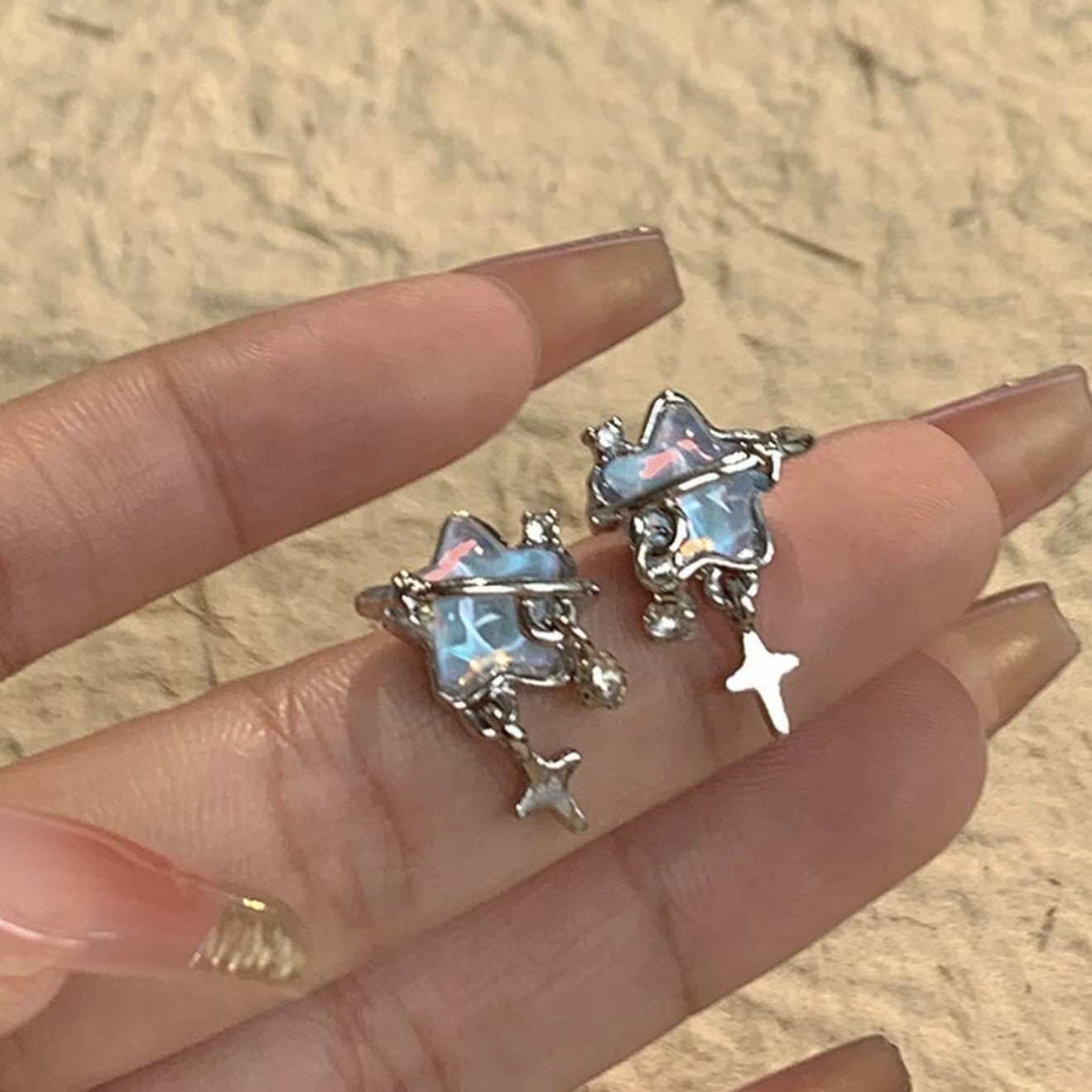 韩系蓝色星星耳钉五角星时尚个性气质小众耳环高级感甜美网红耳饰