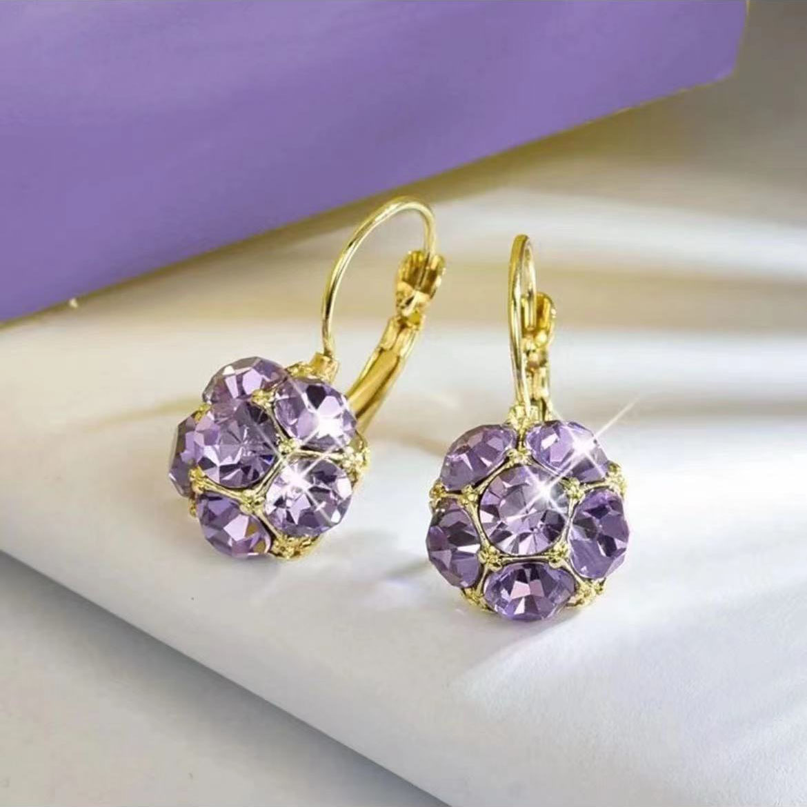 紫色のクリスタルウォータードロップ型イヤリング、シンプルで上品なイヤリング、ファッショナブルでエレガントなイヤリング、卸売、女性用、幾何学模様