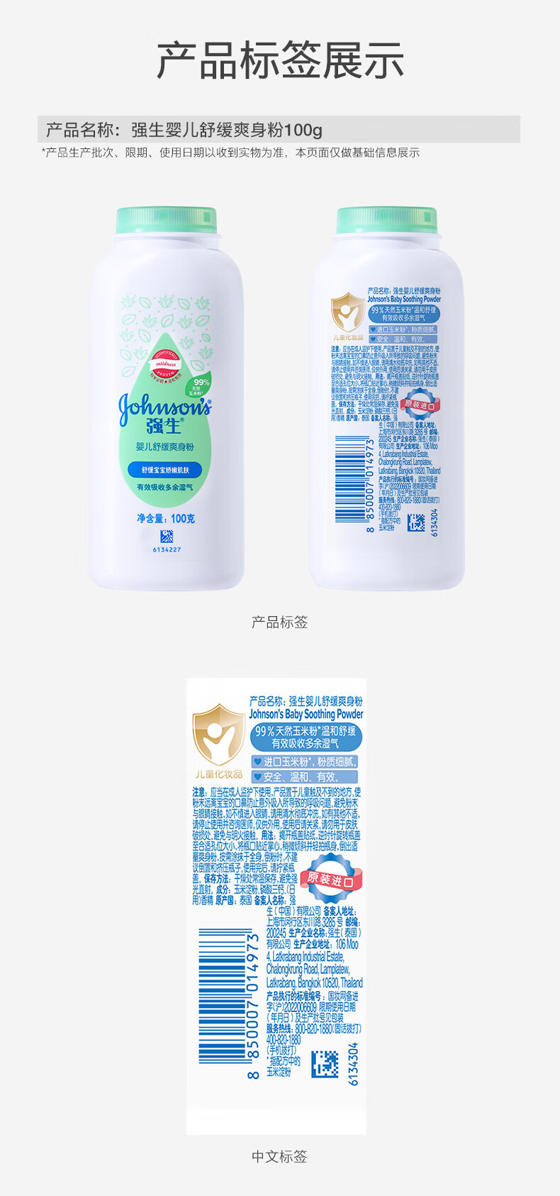 ジョンソン・エンド・ジョンソン ベビータルカムパウダー 新生児 あせも 吸湿性 制汗剤 冷却トウモロコシ粉 ドロップシッピング卸売