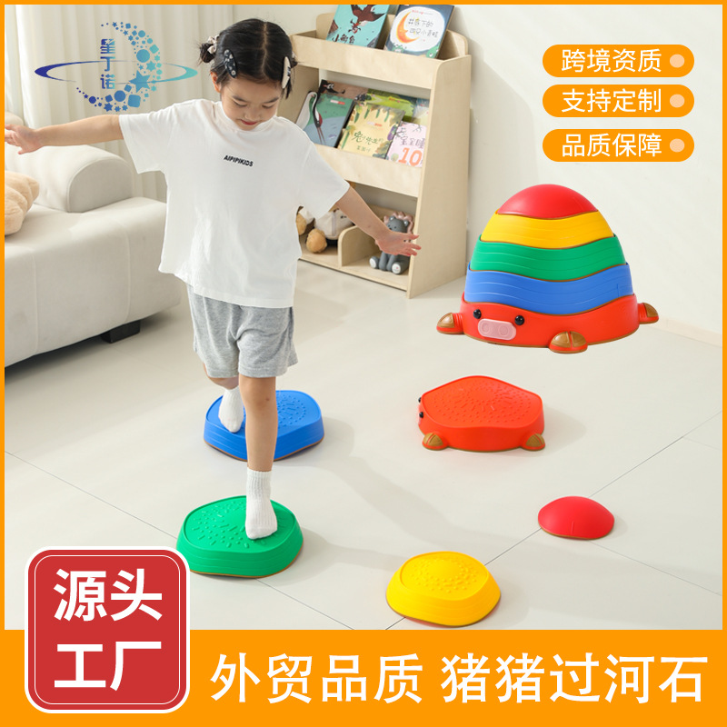 儿童多彩过河石平衡感统训练器材猪猪踩踏石防滑垫脚石跨境玩具