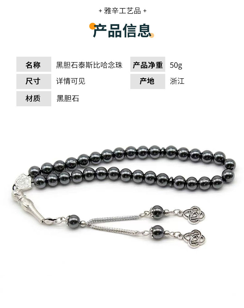 タイスビハ33粒8センチ黒胆石数珠アラブ手串トルコモデル
